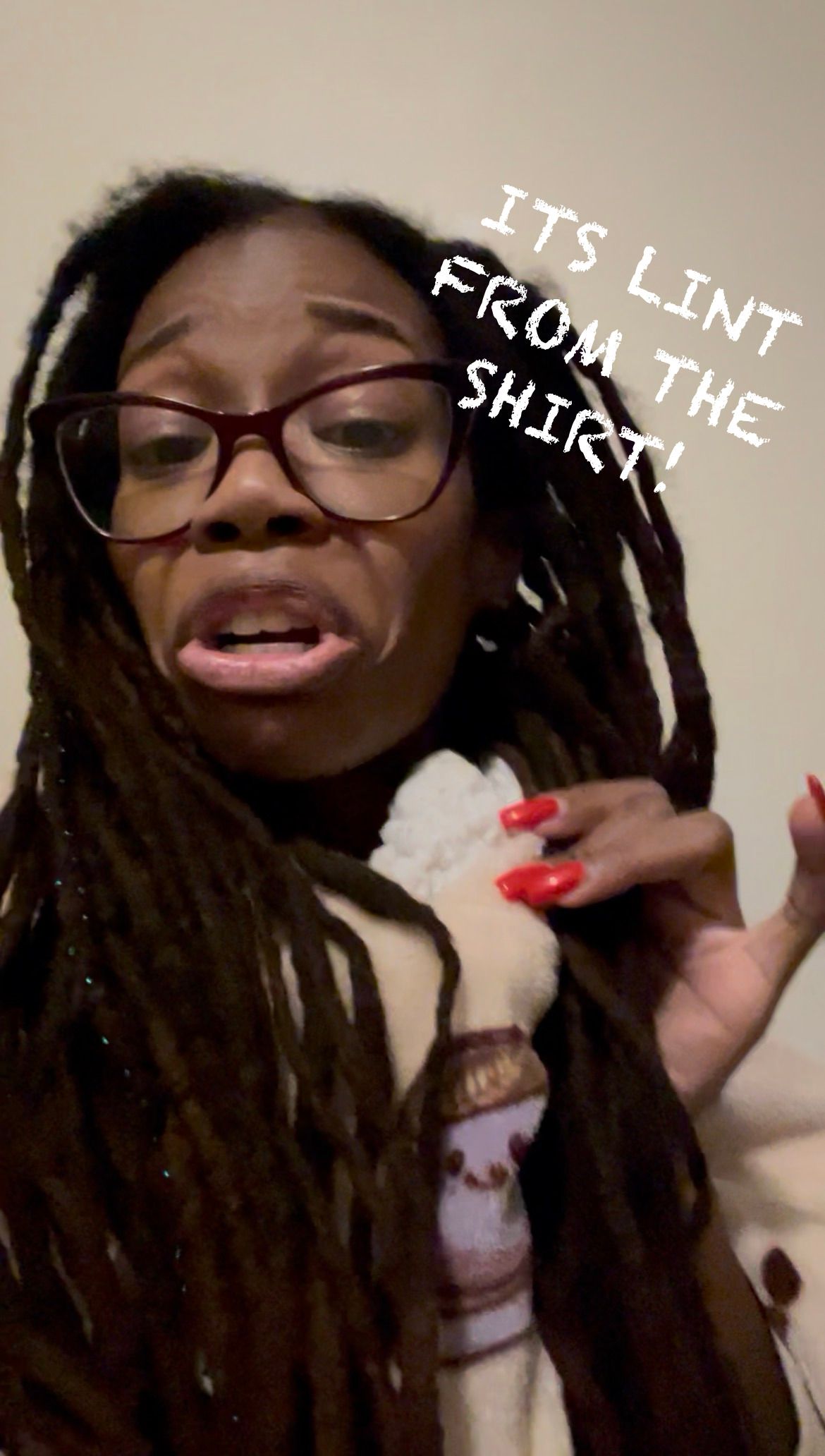 “That’s lint from a hoodie I borrowed from somebody!”